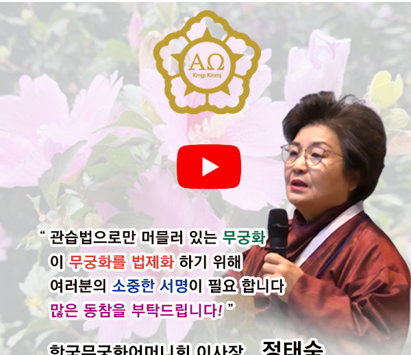 무궁화 법제화를 위한 서명 운동에 모두가 적극 동참하여 주시길 부탁드립니다! 감사합니다.